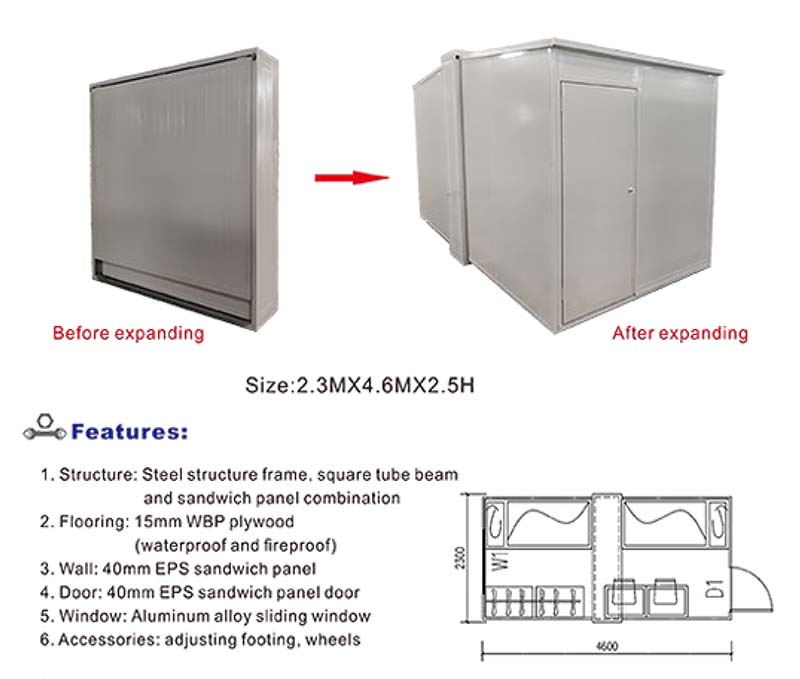 Modular Expandable Tiny Container House Installed Without Crane can be used as home, office, field hospital, outdoor temporary dormitory, construction sties dormitory etc.