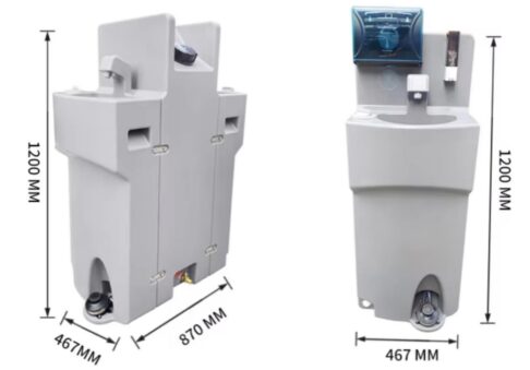 The portable hand washing station provides a reliable and hygienic hand-washing solution for outdoor events and temporary setups without plumbing access. Featuring an integrated clean water tank, wastewater storage, and hands-free operation, it ensures easy, safe, and sanitary use.